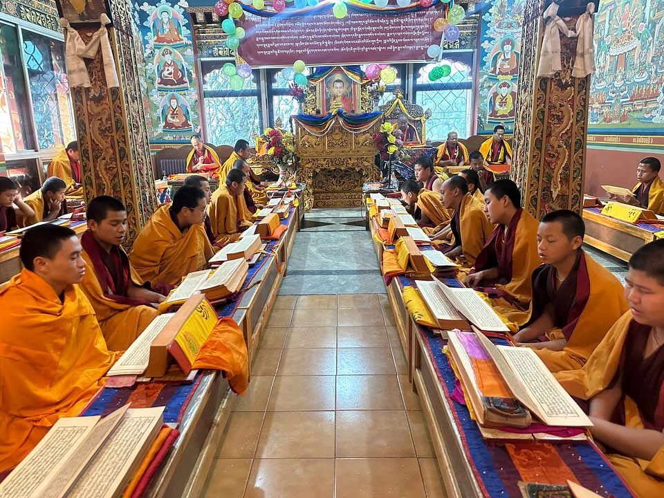 The eight-day Kanjur (Buddhist Canon) recitation at Dongak Kunzang Choeling Monastery in Serzhong, Gelephu, commenced today and will continue until February 21st. This sacred Buddhist canon recitation is dedicated to the well-being and longevity of His Majesty the King, His Majesty the 4th King, Her Majesty the Queen, Her Majesty the Royal Queen Mothers, HRH Gyalsey Jigme Namgyel Wangchuck, HRH Gyalsey Ugyen Wangchuck, HRH Gyalsem Azhi Sonam Yangden Wangchuck, the Royal Family, His Holiness the 70th Je Khenpo, the monastic bodies in Bhutan, and all citizens, aiming for peace and prosperity locally and globally. His Eminence Trulku Ugyen Sherub Yoezer presides over the Kanjur recitation, accompanied by His Eminence Trulku Thubten Tenpai Seljed, khenpos, Lopens, and approximately 150 monks. Everyone is kindly invited to join in for offering prayers together.
