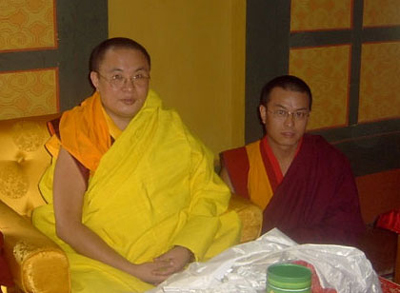 From 20 to 23, Rinpoche has been studying at Tongsa Tsangkha Institude under the supervision of Lop Nurbu Wangchuk Rinpoche. The subjects of his study included commentary canons, sutras, Madyamika, debate and also astrology. From the age of 23 to 32, for almost ten years, Rinpoche stayed in southern India at the Namdroling Monastery of HH Penor Rinpoche, studying sutras, commentary canons, Madyamika, Maha Prajna sutra and received the Namchoe, preliminary, 5 Foundations, tzalung, Zhogchen, oral transmission, empowerments and teachings from HH Penor Rinpoche. And Rinpoche has completed all of the subjects mentioned above.