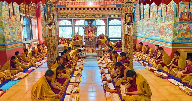 His Eminence Khentrul Thokmeth Rinpoche presides over the Kanjur recitation along with Trulkus, Khenpos, Lama, Lopens and about 70 monks as nations kurim to contain the pandemic and bring peace in our country and the whole world.