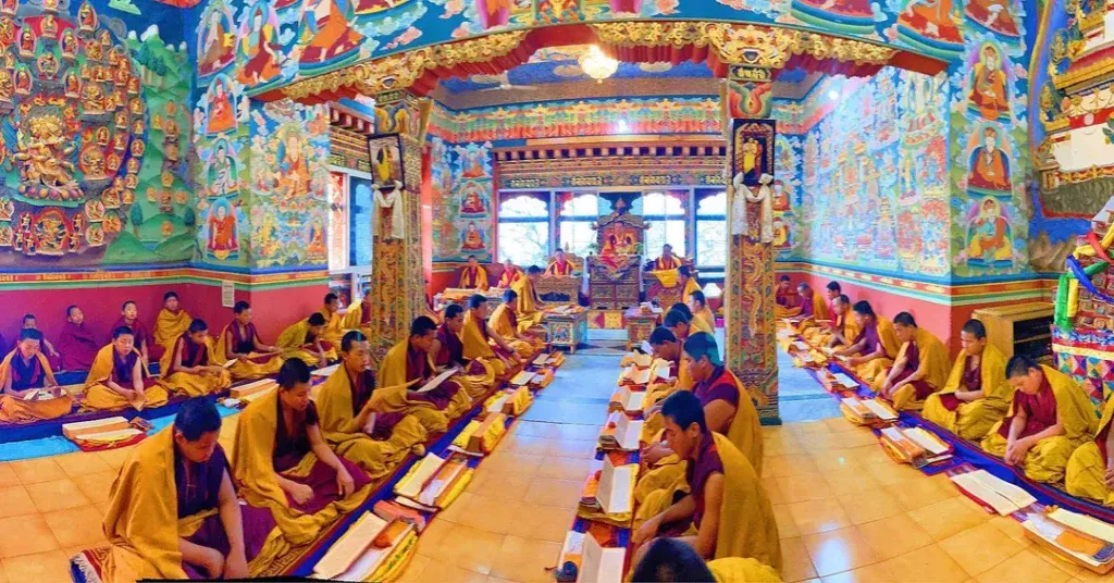 His Eminence Khentrul Thokmeth Rinpoche presides over the Kanjur recitation along with Trulkus, Khenpos, Lama, Lopens and about 70 monks as nations kurim to contain the pandemic and bring peace in our country and the whole world.