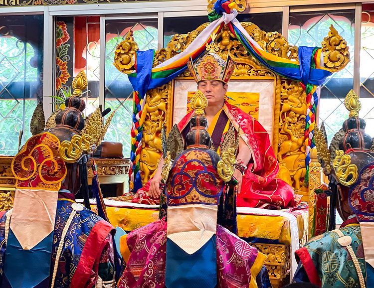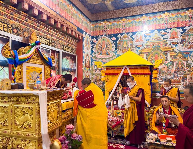 Khandro Tenzhu is an appeal to the Five Wisdom Dakinis asking them not to take away Rinpoche to the Buddha field so that His Eminence will continue benefitting the sentient beings. With khandro Tenzhu, KuSung Mandrel was also offered to His Eminence as a deep gratitude for having given the empowerments.